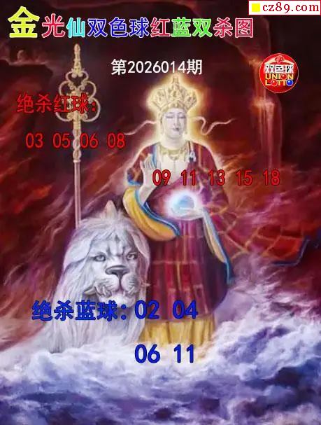 > 双色球2026年图迷014期 金光仙红蓝双杀图